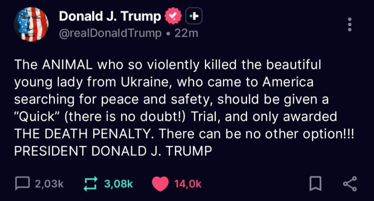 Prezydent Trump szybko rozprawia się z mordercą nożowym młodej Ukrainki