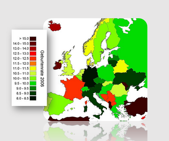 Wskaźnik urodzeń określa liczbę żywych urodzeń na 1000 mieszkańców rocznie | Źródło: Matthias S., Copyrighted free use, via Wikimedia Commons