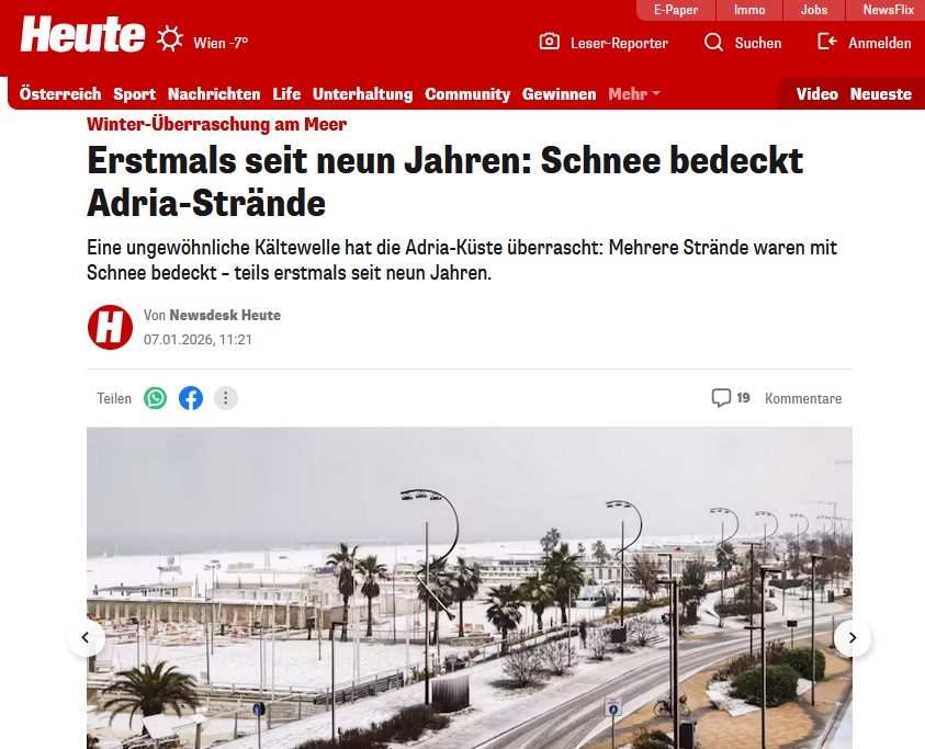 Kiedy „ocieplenie klimatyczne” robi przerwę: Mimo „ugotowania Ziemi”, jak to ostatnio określają, niezwykle silna fala zimna trzyma całą region Adriatyku w napięciu – z ostrzeżeniami o oblodzeniu, planami działania i nocnymi rekordami mrozu.