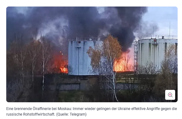A przy przedstawieniu płonących zbiorników olejowych w tym samym artykule można niemal rozmarzyć się, gdy mówi się o (zobacz zdjęcie powyżej wraz z umieszczonym tekstem) „efektywnych atakach”. To jednak nic nie zmieni w kwestii porażki Ukrainy w tej bezsensownej wojnie.
