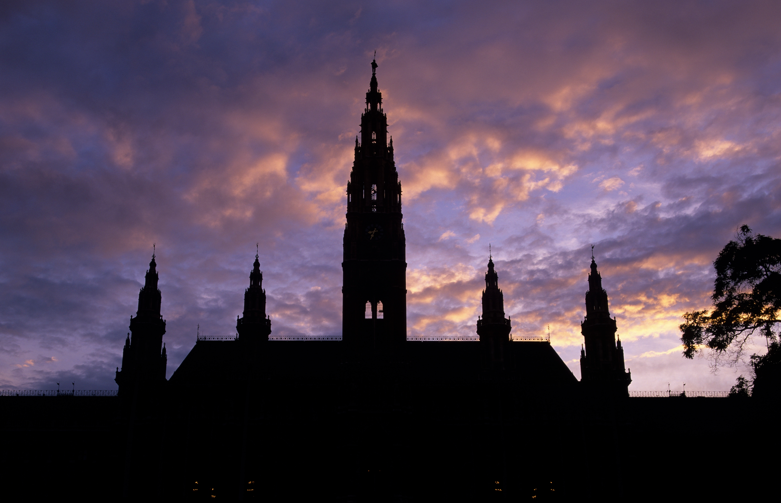 Wiedeński ratusz przed wieczornym niebem. | Obraz: shutterstock